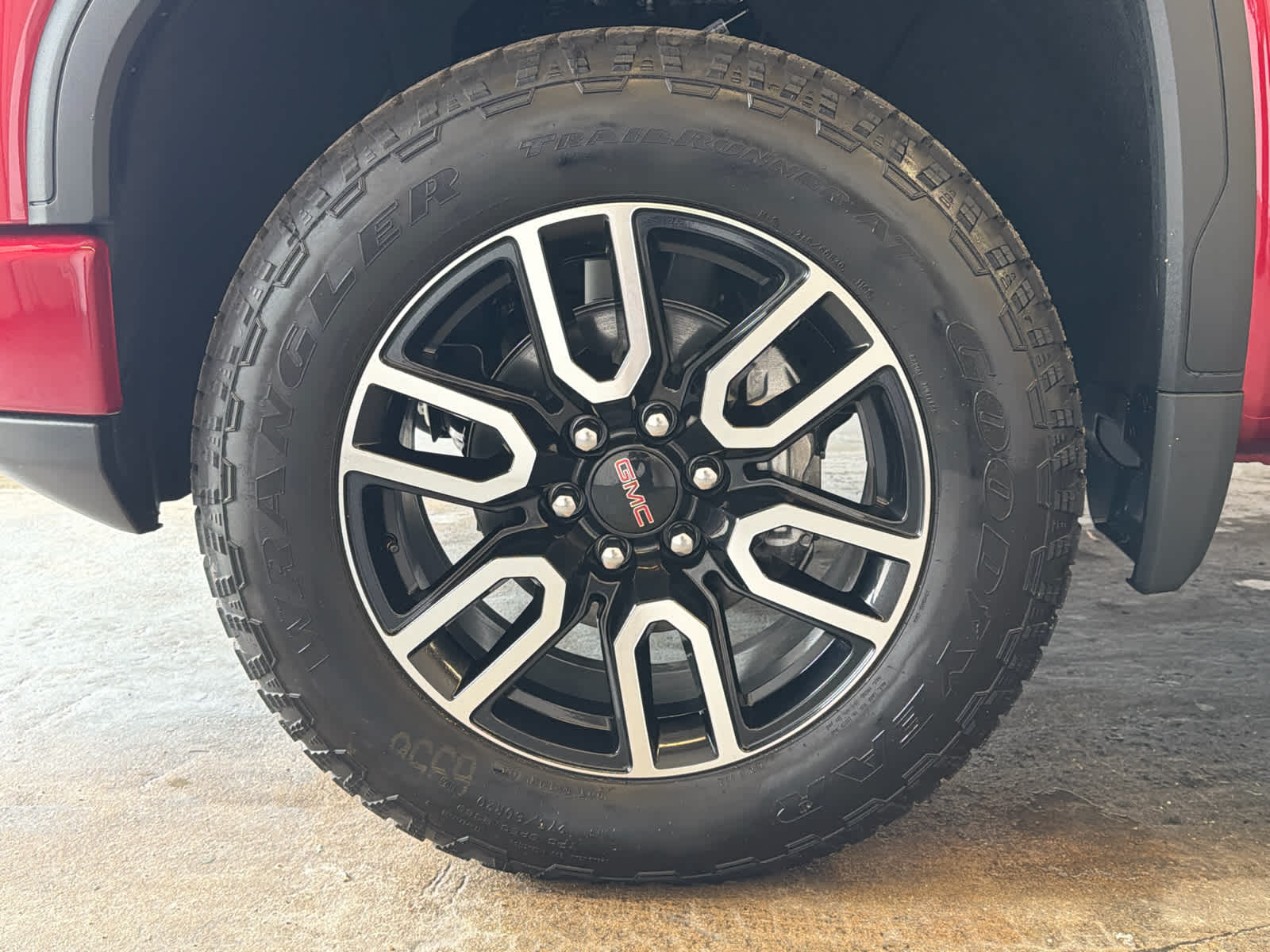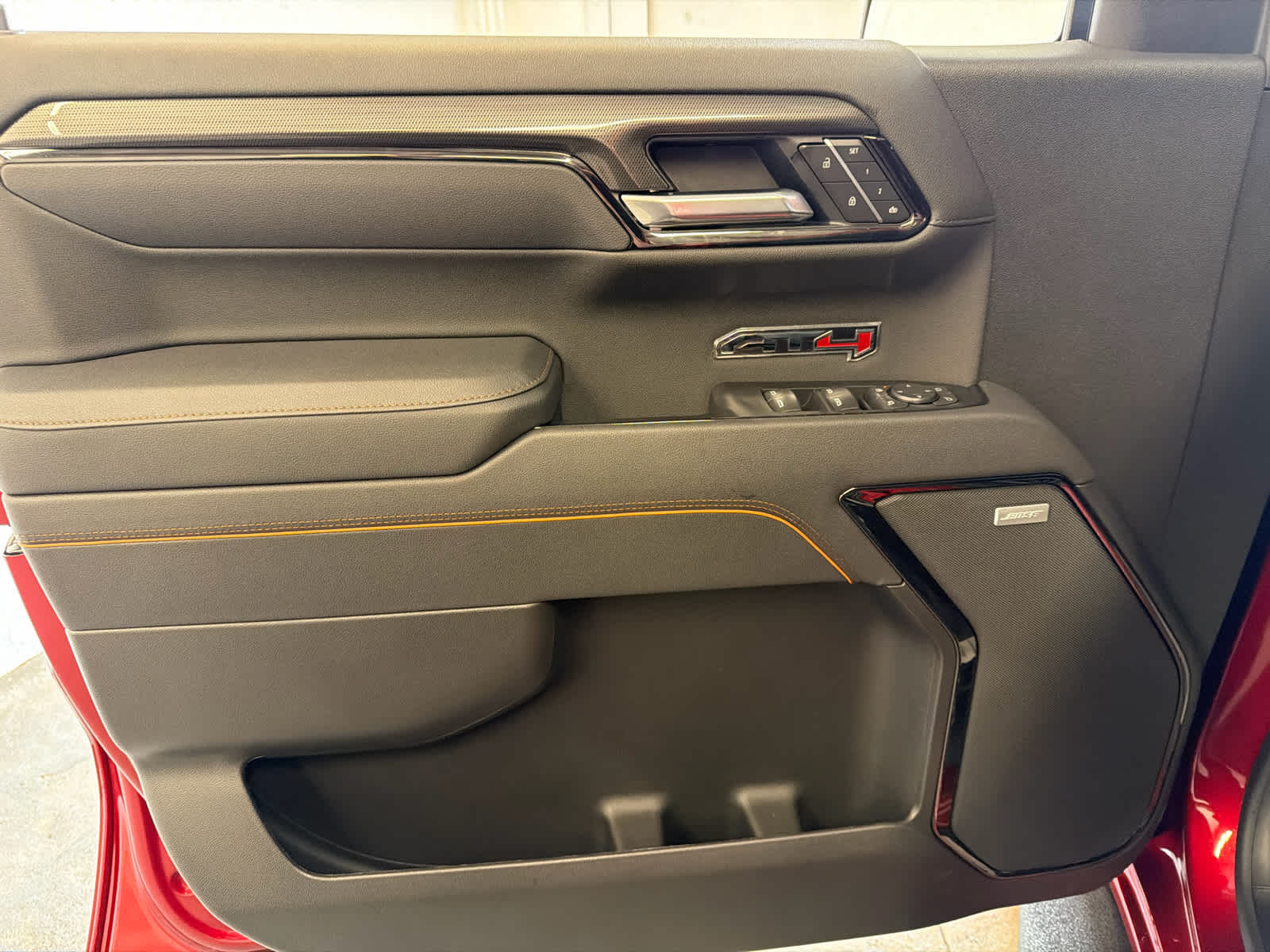 TECHNOLOGY PACKAGE includes (DRZ) Rear Camera Mirror and (UV6) Multicolor 15" Diagonal Head-Up Display (Includes (UVN) Bed View Camera.), ENGINE, 6.2L ECOTEC3 V8 (420 hp [313 kW] @ 5600 rpm, 460 lb-ft of torque [624 Nm] @ 4100 rpm); featuring Dynamic Fuel Management, AT4 PREFERRED PACKAGE includes (UG1) Universal Home Remote and (A48) rear sliding power window, AUDIO SYSTEM, 13.4" DIAGONAL PREMIUM GMC INFOTAINMENT SYSTEM WITH GOOGLE BUILT IN APPS SUCH AS NAVIGATION AND VOICE ASSISTANCE, INCLUDES COLOR TOUCH-SCREEN, MULTI-TOUCH DISPLAY, AM/FM STEREO Bluetooth® streaming audio for music and most phones; featuring wireless Android Auto® and Apple CarPlay® capability for compatible phones (STD), TRANSMISSION, 10-SPEED AUTOMATIC WITH ELECTRONIC PRECISION SHIFT, ELECTRONICALLY CONTROLLED with overdrive, and tow/haul mode and steering column paddle shifters. Includes Cruise Grade Braking and Powertrain Grade Braking. GMC AT4 with Volcanic Red Tintcoat exterior and Jet Black with Kalahari accents interior features a 8 Cylinder Engine with 420 HP at 5600 RPM*.