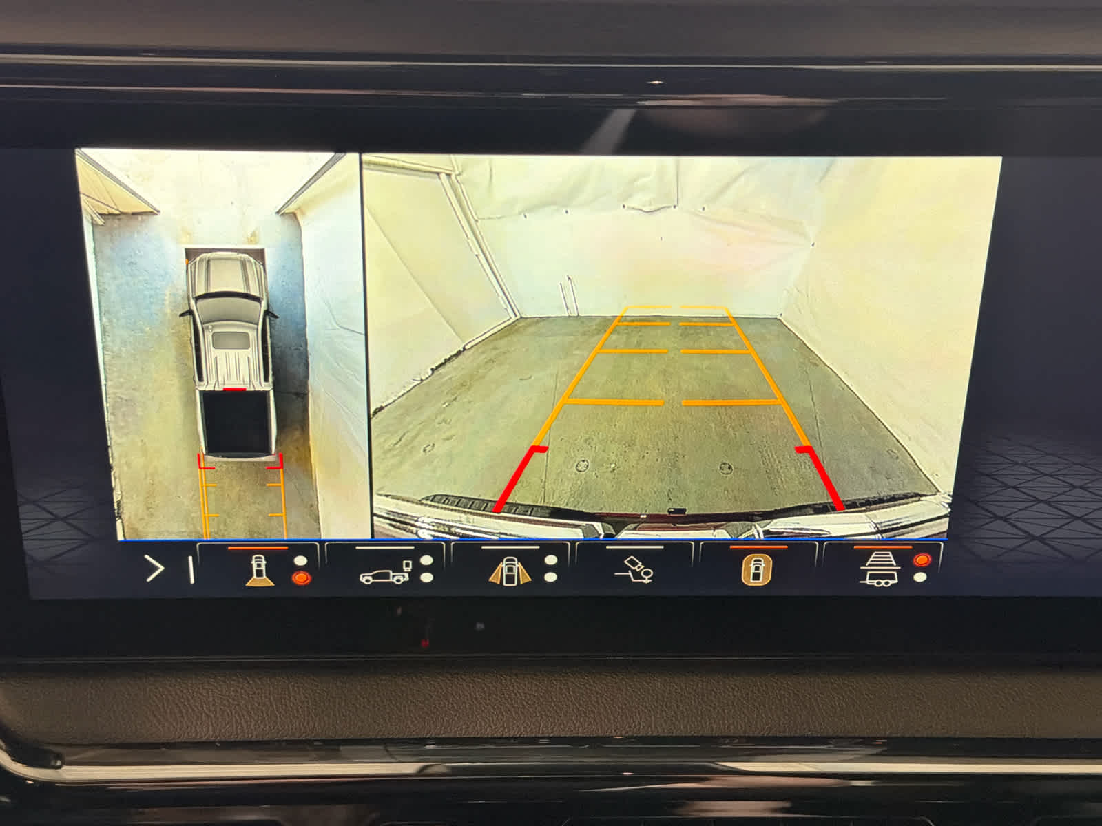 - Allows driver to see inside the cargo bed on the infotainment display to help with 5th wheel or gooseneck hitching and to check cargo