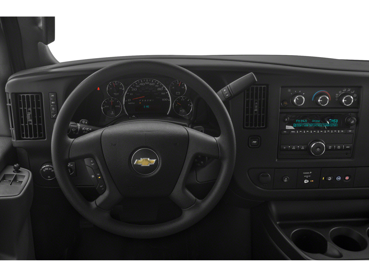 ENGINE, VORTEC 6.0L V8 SFI FLEXFUEL (341 hp [254.3 kW] @ 5400 rpm, 373 lb-ft of torque [503.6 N-m] @ 4200 rpm) (Includes external engine oil cooler. SIDE BLIND ZONE ALERT, DRIVER CONVENIENCE PACKAGE includes Tilt-Wheel and (K34) cruise control, REAR PARK ASSIST, FORWARD COLLISION ALERT Includes (UFL) Lane Departure Warning. REMOTE KEYLESS ENTRY with 2 transmitters and remote panic button, AUDIO SYSTEM, AM/FM STEREO WITH CD/MP3 PLAYER USB port, seek-and-scan, digital clock, auto-tone control, Radio Data System (RDS), TheftLock, random select, auxiliary jack and 2 front door speakers, MIRRORS, OUTSIDE HEATED POWER-ADJUSTABLE, BLACK, MANUAL-FOLDING, Bluetooth® FOR PHONE, PERSONAL CELL PHONE CONNECTIVITY TO VEHICLE AUDIO SYSTEM, TRANSMISSION, 6-SPEED AUTOMATIC, HEAVY-DUTY, ELECTRONICALLY CONTROLLED with overdrive and tow/haul mode. Includes Cruise Grade Braking, Powertrain Grade Braking, and Tap-Up/Tap-Down Driver Shift Control, STEERING WHEEL CONTROLS, MOUNTED AUDIO CONTROLS. Chevrolet Express Cargo Van with Summit White exterior and Medium Pewter interior features a 8 Cylinder Engine with 276 HP at 5200 RPM*.