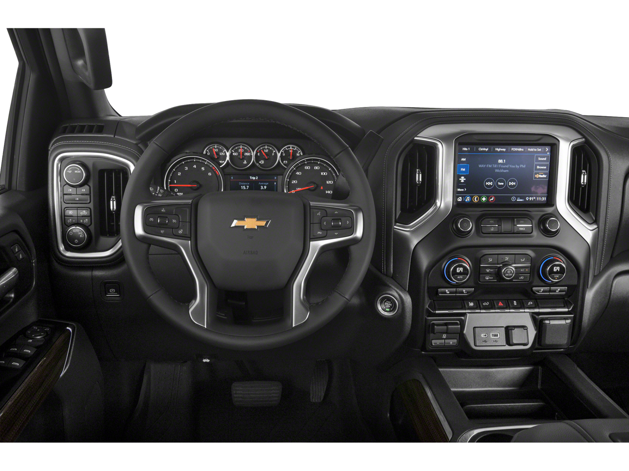 B20-Diesel compatible, (445 hp [332 kW] @ 2800 rpm, 910 lb-ft of torque [1220 Nm] @ 1600 rpm), includes (A2X) 10-way power driver seat including power lumbar, (KA1) heated driver and passenger seats, (N37) manual tilt/telescoping steering column, (NP5) leather-wrapped steering wheel, (KI4) 120-volt power outlet, (KC9) 120-volt bed-mounted power outlet, (CJ2) dual-zone automatic climate control and (C49) rear-window defogger (Vehicles built prior to 11-15-2021 and on or after 2-21-2022 through 3-13-2022 and after 4-24-2022 include heated driver and front outboard passenger seats. Certain vehicles built between 11-15-2021 and 2-20-2022 and on or after 3-14-2022 through 4-24-2022 will be forced to include (00V) Not Equipped with Heated or Ventilated Front Seats, which removes heated front seats. Vehicles equipped with (00V) Not Equipped with Heated or Ventilated Front Seats will be, lower convex mirrors, turn signal indicators, puddle lamps, perimeter lighting, auxiliary lighting, power folding/manual extending (extends 3.31" [84.25mm]) Includes (DD8) auto-dimming rearview mirror. includes (BTV) Remote Start and (C49) rear-window defogger, with Silver painted accents, 6-spoke, 1st and 2nd rows on Crew Cab and Double Cab, (includes Chevrolet Bowtie logo on front mats), 8" diagonal color touchscreen, AM/FM stereo. Additional features for compatible phones include: Bluetooth® audio streaming for 2 active devices, voice command pass-through to phone, wired Apple CarPlay® and Android Auto® capable. (STD), TRANSMISSION, ALLISON 10-SPEED AUTOMATIC. Chevrolet LT with Summit White exterior and Jet Black interior features a 8 Cylinder Engine with 401 HP at 5200 RPM*.