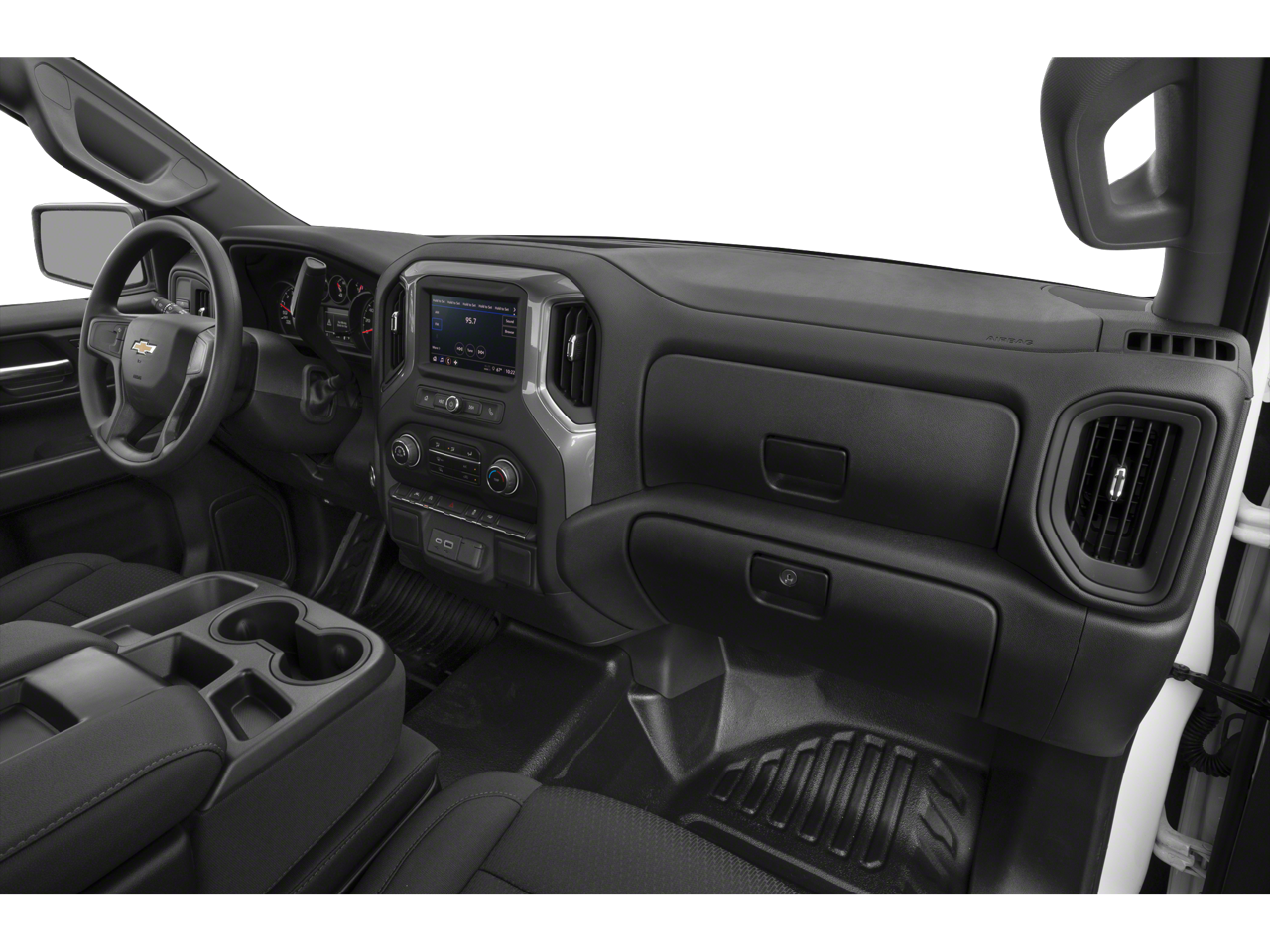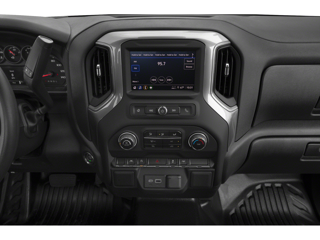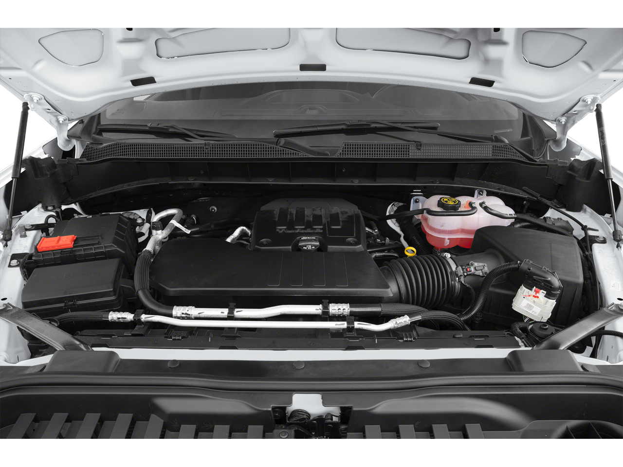 ENGINE, 5.3L ECOTEC3 V8 (355 hp [265 kW] @ 5600 rpm, 383 lb-ft of torque [518 Nm] @ 4100 rpm); featuring available Dynamic Fuel Management that enables the engine to operate in 17 different patterns between 2 and 8 cylinders, depending on demand, to optimize power delivery and efficiency, WHEELS, 17" X 8" (43.2 CM X 20.3 CM) BRIGHT SILVER PAINTED ALUMINUM, AUDIO SYSTEM, CHEVROLET INFOTAINMENT 3 SYSTEM 7" diagonal color touchscreen, AM/FM stereo. Additional features for compatible phones include: Bluetooth® audio streaming for 2 active devices, voice command pass-through to phone, wired Apple CarPlay® and Android Auto® capable. (STD), TRANSMISSION, 10-SPEED AUTOMATIC, ELECTRONICALLY CONTROLLED with overdrive and tow/haul mode. Includes Cruise Grade Braking and Powertrain Grade Braking. Chevrolet Work Truck with Summit White exterior and Jet Black interior features a 8 Cylinder Engine with 310 HP at 5600 RPM*.