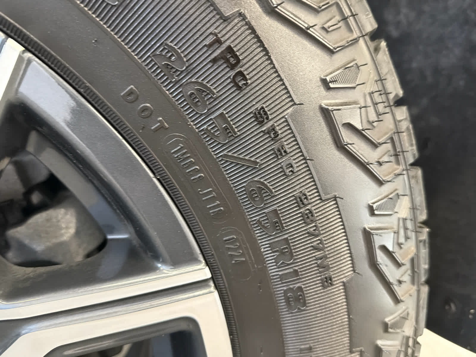 - 18" 265/65R18 all-terrain blackwall 32" OD tires