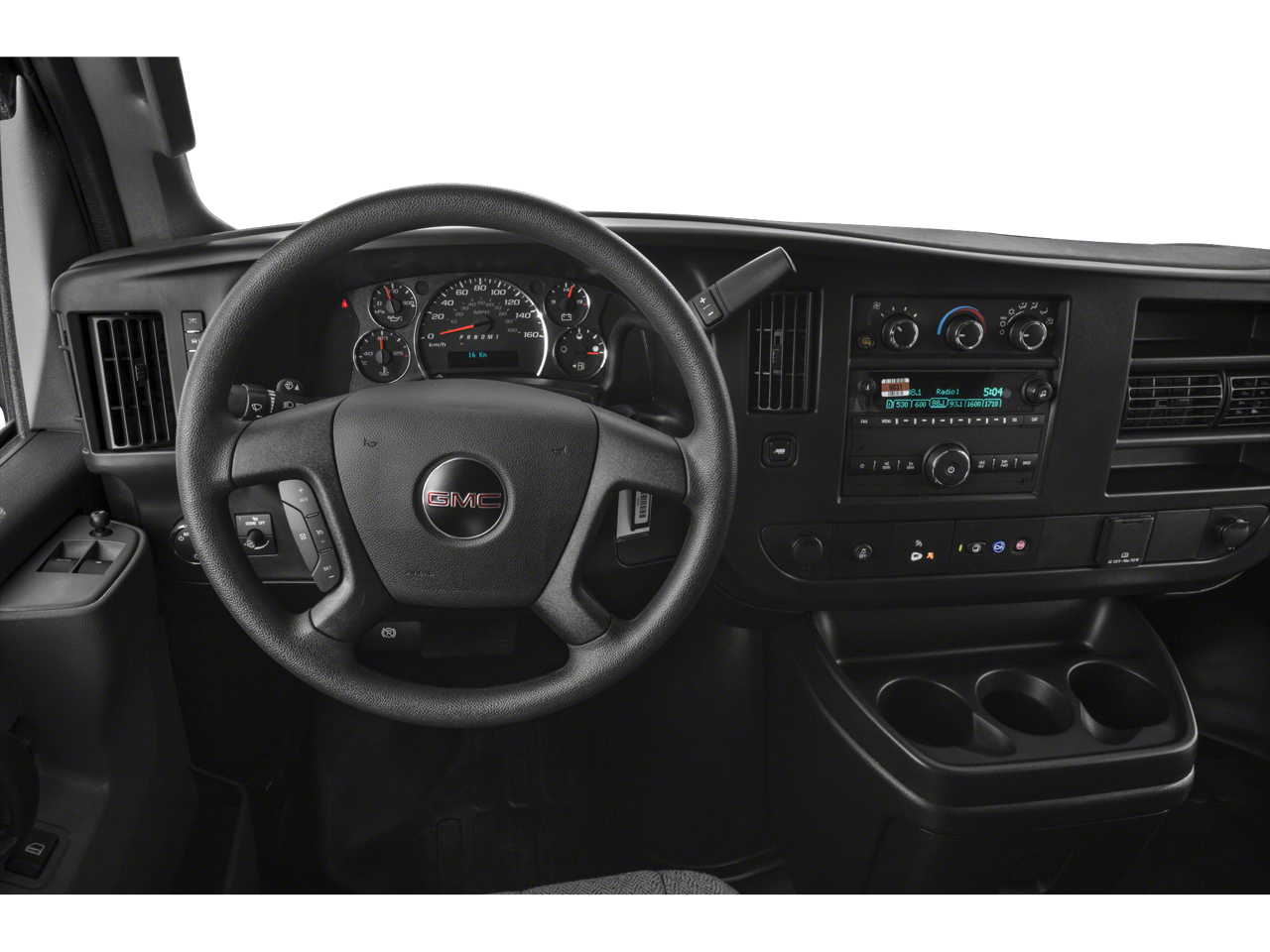 DRIVER CONVENIENCE PACKAGE includes Tilt-Wheel and (K34) cruise control, ENGINE, 4.3L V6 with Direct Injection and Variable Valve Timing, includes aluminum block construction (276 hp [206 kW] @ 5200 rpm, 298 lb-ft of torque [404 Nm] @ 3900 rpm) (STD), TRANSMISSION, 8-SPEED AUTOMATIC, ELECTRONICALLY CONTROLLED with overdrive and tow/haul mode. Includes Cruise Grade Braking, Powertrain Grade Braking and Tap-Up/Tap-Down Driver Shift Control (STD), AUDIO SYSTEM, AM/FM STEREO WITH MP3 PLAYER seek-and-scan, digital clock, TheftLock, random select, auxiliary jack and 2 front door speakers (STD). GMC Savana Cargo Van with Summit White exterior and Jet Black/Medium Dark Pewter interior features a V6 Cylinder Engine with 276 HP at 5200 RPM*.