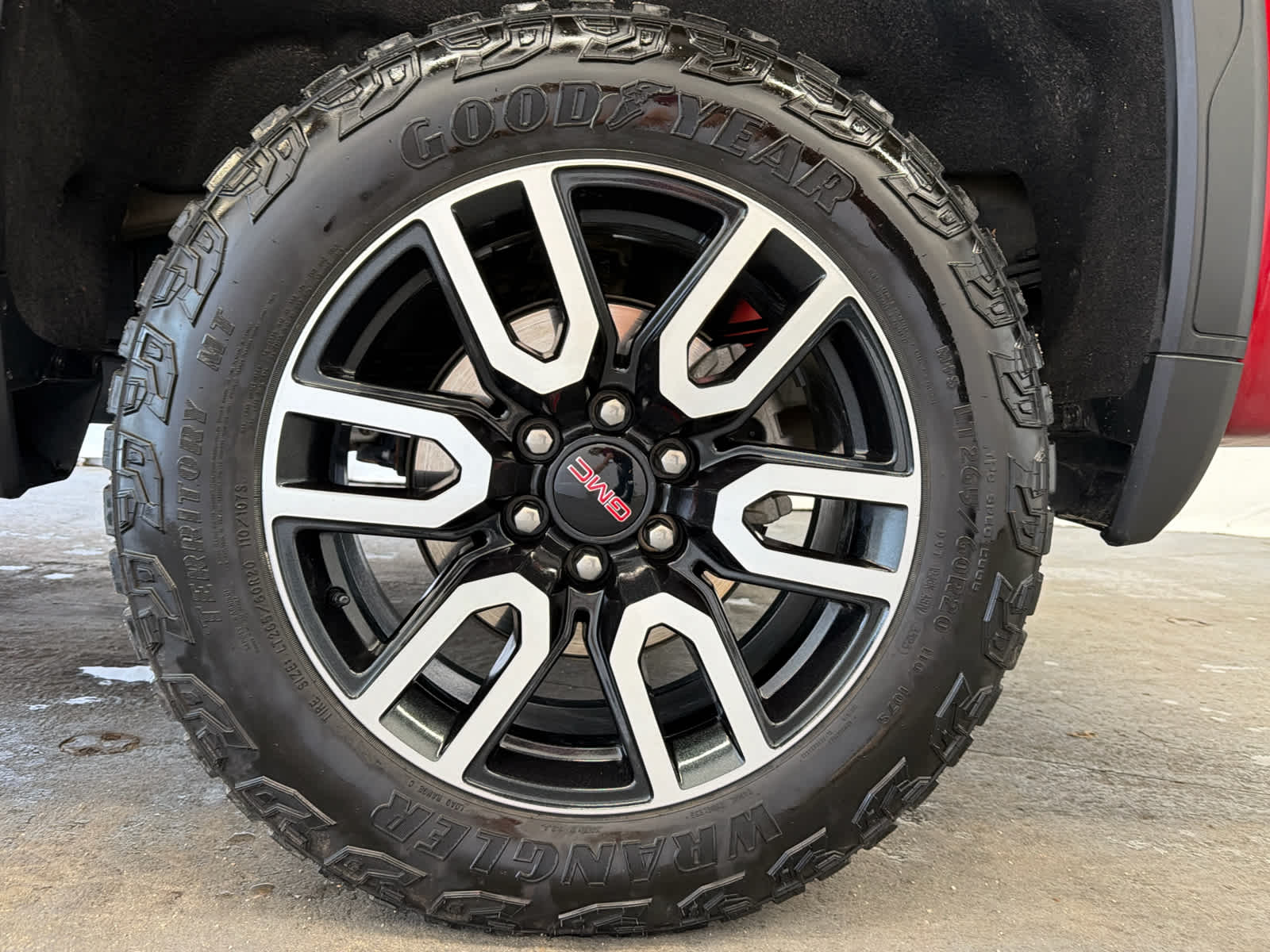 includes (DRZ) Rear Camera Mirror and (UV6) Multicolor 15" Diagonal Head-Up Display (Includes (UVN) Bed View Camera.), (420 hp [313 kW] @ 5600 rpm, 460 lb-ft of torque [624 Nm] @ 4100 rpm); featuring Dynamic Fuel Management, with Carbon Grey Metallic accents, includes (UG1) Universal Home Remote and (A48) rear sliding power window, Bluetooth® streaming audio for music and most phones; featuring wireless Android Auto® and Apple CarPlay® capability for compatible phones (STD), with overdrive, and tow/haul mode and steering column paddle shifters. Includes Cruise Grade Braking and Powertrain Grade Braking. GMC AT4 with Volcanic Red Tintcoat exterior and Jet Black with Kalahari accents interior features a 8 Cylinder Engine with 420 HP at 5600 RPM*.