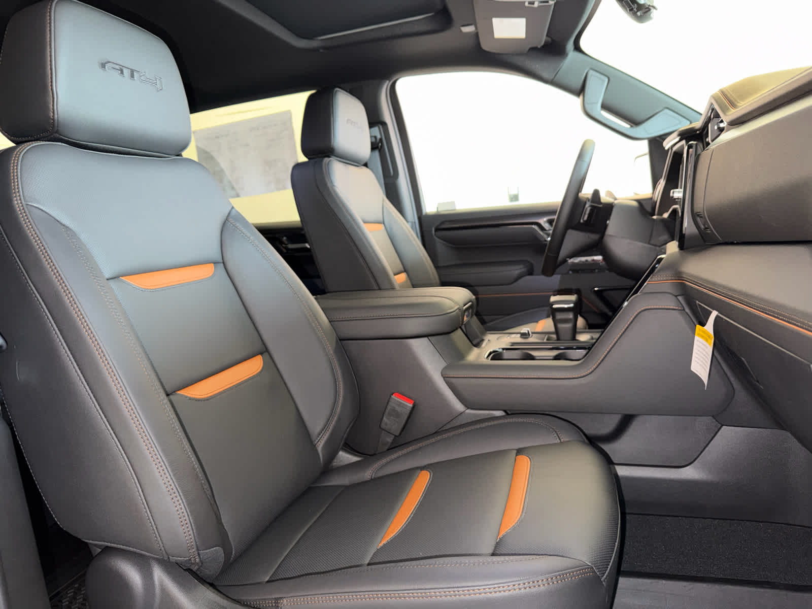 includes (DRZ) Rear Camera Mirror and (UV6) Multicolor 15" Diagonal Head-Up Display (Includes (UVN) Bed View Camera.), SUNROOF, POWER, includes (UG1) Universal Home Remote and (A48) rear sliding power window, Bluetooth® streaming audio for music and most phones; featuring wireless Android Auto® and Apple CarPlay® capability for compatible phones (STD), with overdrive, tow/haul mode and steering column paddle shifters. Includes Cruise Grade Braking and Powertrain Grade Braking (STD). GMC AT4 with Sterling Metallic exterior and Jet Black with Kalahari accents interior features a Straight 6 Cylinder Engine with 305 HP at 3750 RPM*.